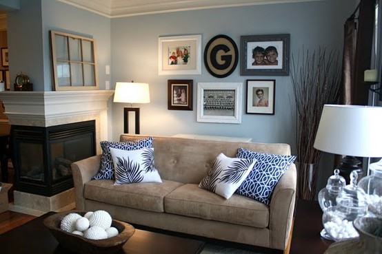 2.) Photo Wall: I've fallen in love with photo walls and decided to re purpose a bunch of old frames around the abode to make one. Here was my inspiration (found on Pinterest):and so I made this (Please forgive the glare):